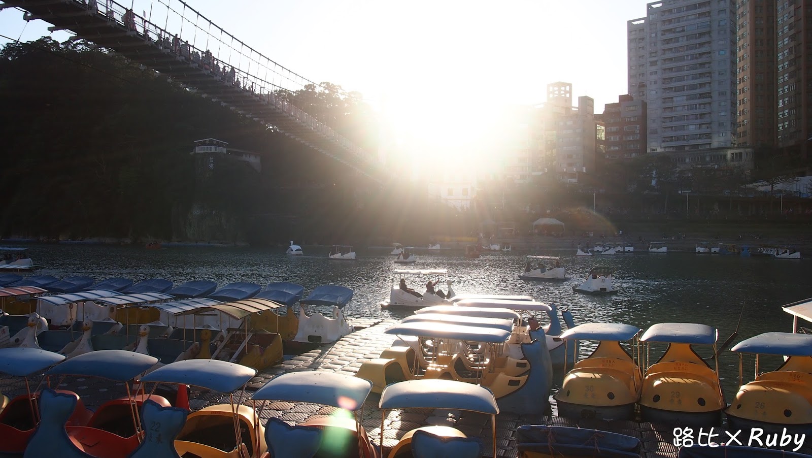 在這河面上踩著天鵝船