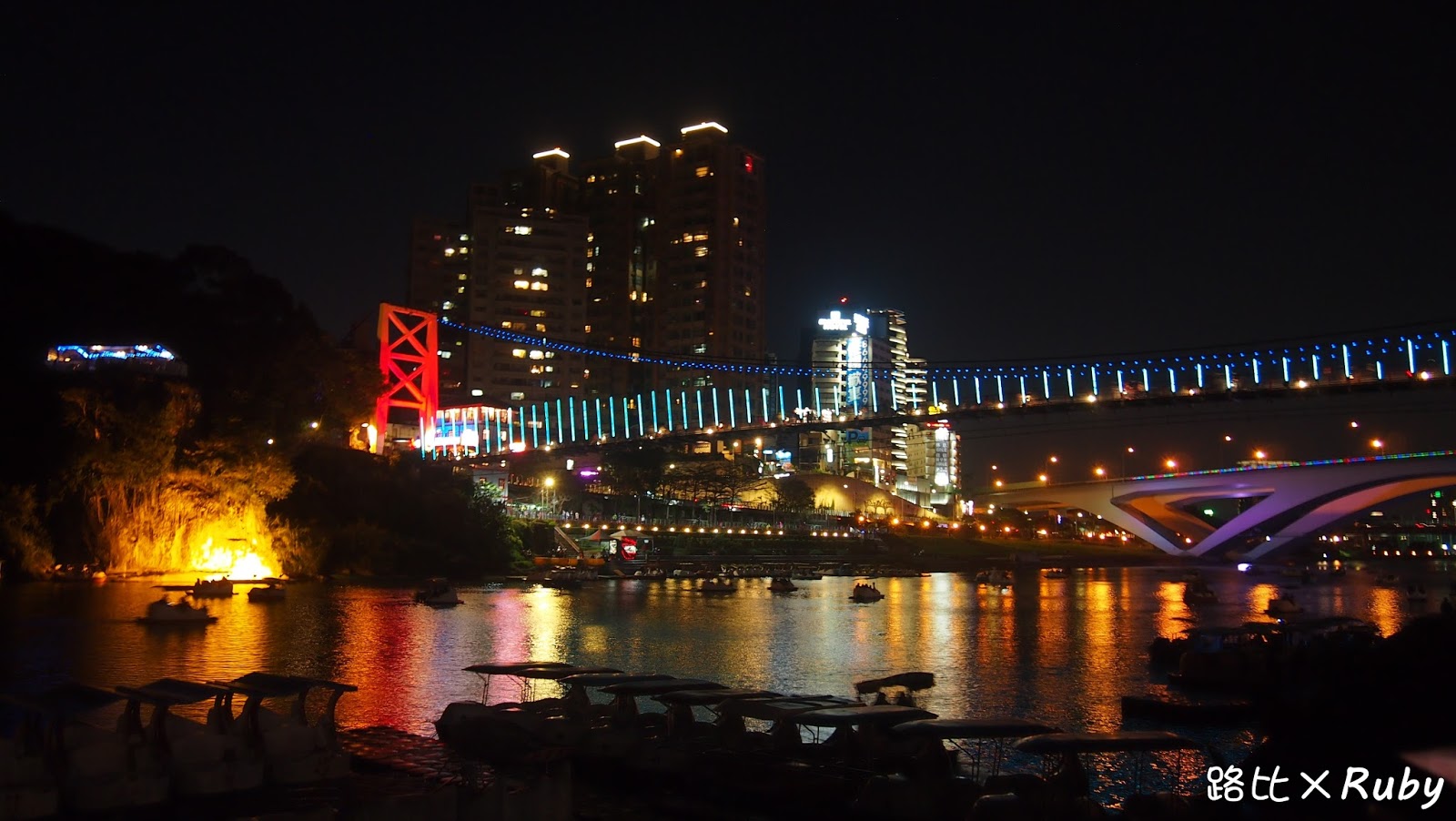 碧潭吊橋以及附近都點亮的燈光